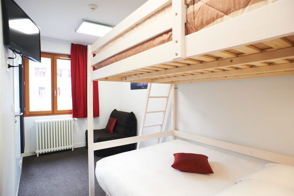 Réservez dès maintenant Arrivée : Départ : Nombre de personnes : Cette chambre pour 4 ou 5 personnes avec 2 lits superposés doubles et un lit simple est idéale pour les amis et les familles. Il dispose d’une salle de bain avec douche, télévision à écran plat et d’une vue sur la cour. Services inclus […]